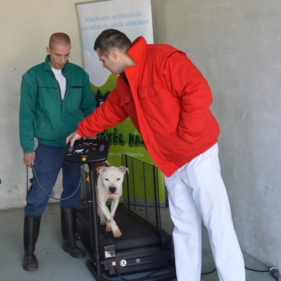 Ezért bocsájtottunk a telep rendelkezésére tavaly márciusban, egy speciálisan, kutyák számára kialakított elektromos futópadot. A készülékkel többféle sebességet és pálya meredekséget lehet szimulálni, így a kutyák kondíciójához igazíthatóak a gyakorlatok.