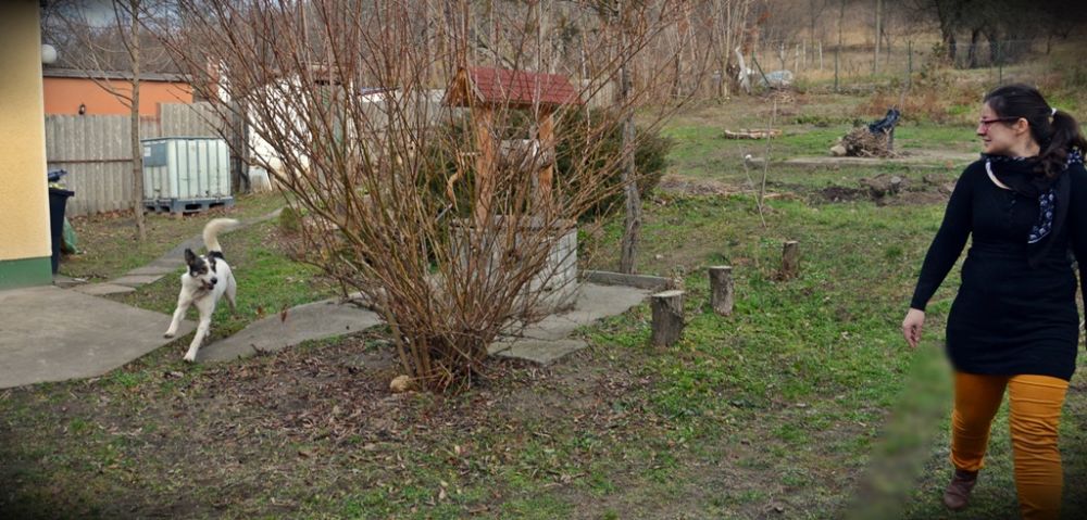 „ … Gondoltam írok pár sort, hogy milyen volt az első közös napunk Boltonnal. Amint elmentetek el is kezdte a kert felfedezését, mivel a lakásba nem sikerült becsalogatnom. Az első 2 óra szuper volt, felvittem a rétre futottunk egyet, aztán sajnos mivel dolgoznom kellett kint kellett hagynom a kertben, de fél szemem rajta volt. Körbeszagolgatta a növényeket, jelölgetett, pusziszkodott a szomszéd kutyákkal a szomszéd meg is simizte és nem volt kéz leharapás 🙂 szóval tényleg családi kutya lesz mint sem ház őrző. Aztán láttam, hogy a nagy sétálásban el is fáradt és leheveredett a konyhaajtó elé és aludt egyet… Este volt közös futás az utcában az is szuper volt. 🙂 Türelmesek leszünk és kitartóan terelgetjük, hogy teljesen egészséges lelkületű kutya válhasson belőle. Nagyon köszönjük a segítségeteket és hamarosan jelentkezem újabb tapasztalatokkal. „