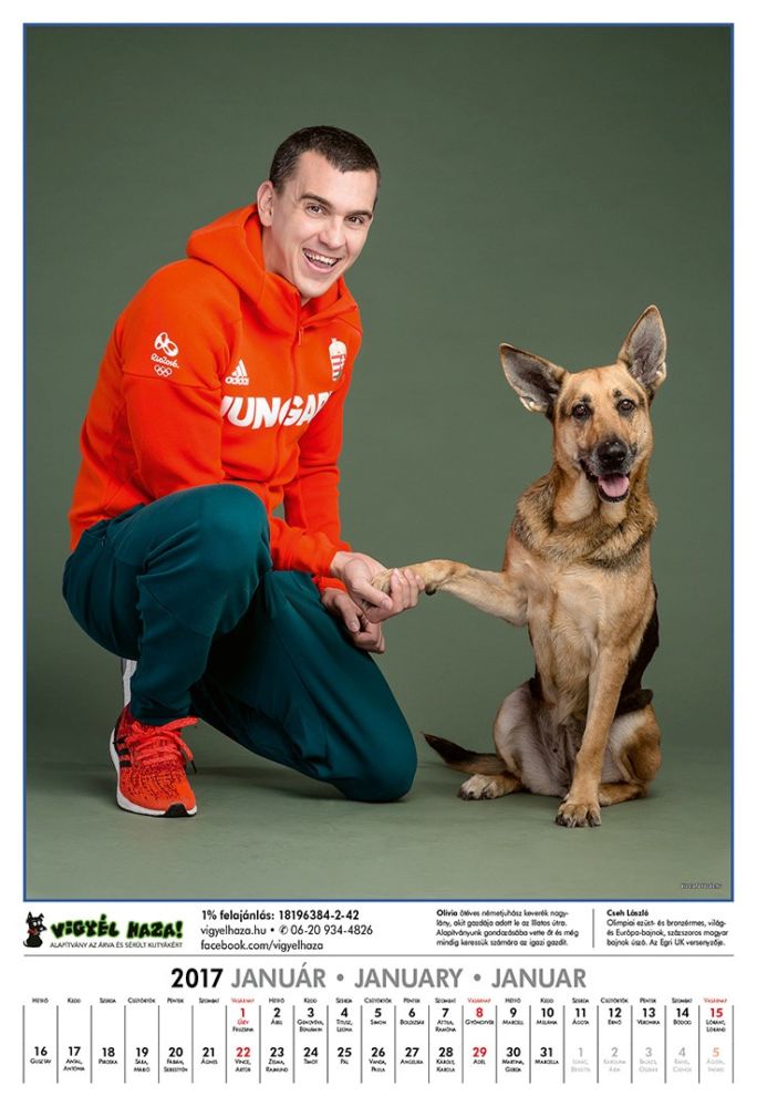 Naptárunkon, a kiváló olimpikonjaink és paralimpikonjaink segítettek nekünk, egy-egy kutya társaságában. A képeken, az élsportolókkal együtt szereplő kutyák, korábban az Illatos útra kerültek, majd az alapítvány gondozásában várták új gazdáikat. Mára, már szinte kivétel nélkül végleges otthonra leltek.