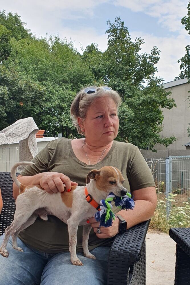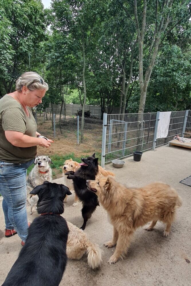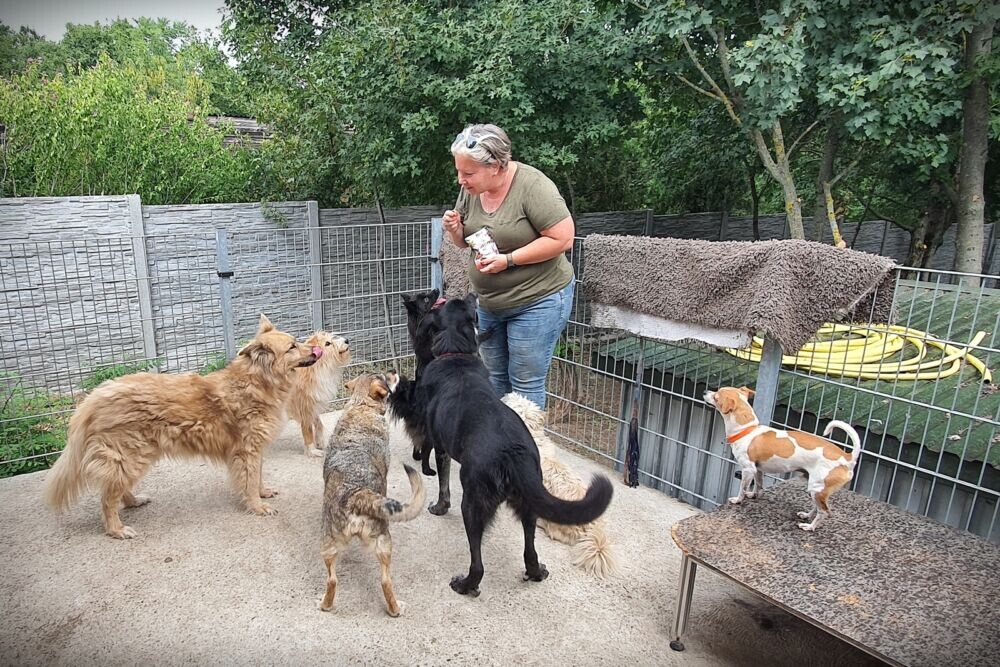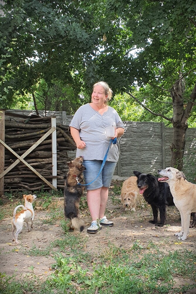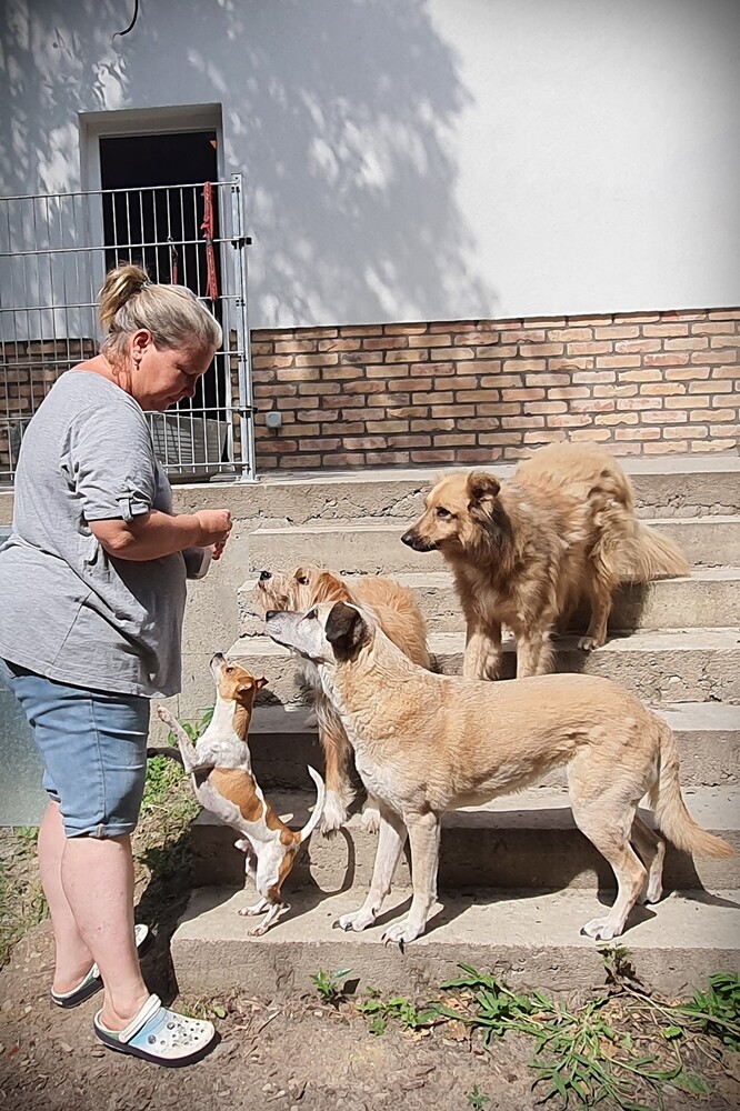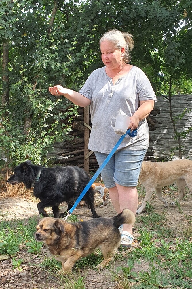Budafokon, ahol már legtöbben csak kirándulni járnak, lakik Ági az erdő szélén, 16 örökbefogadott kutyájával és még több, terápiára szoruló négylábúval. Kapcsolatunk 10 éve kezdődött, mikor alapítványunkhoz került súlyos, nyílt lábtöréssel Hajnal. A fiatal nőstény egy igazi „erdei kutya” volt: emberekkel talán soha nem találkozott, a kimondottan agresszív állat. Gyógyulása után kerestük fel Ágit, hogy elvállalná-e Hajni szocializációját. A hosszú, de sikeres folyamat végén Ági örökbe fogadta Hajnit! Aztán az elmúlt nyolc évben több viselkedészavaros kutyánk nevelését vállalta sikeresen Ági.