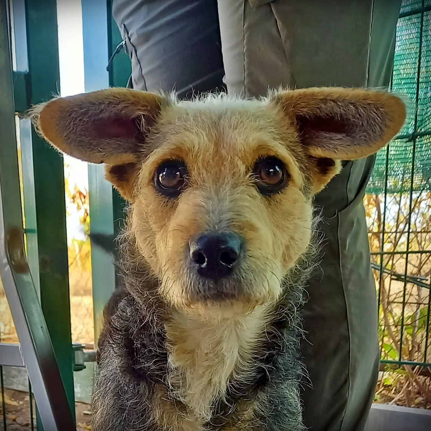 Füge szomorú… és érthető, hiszen Budapest peremén, egy kiserdő szélén kóborolt, míg állatbarátok magukhoz csalogatták és a XVII. kerületi önkormányzat kennelébe vitték.