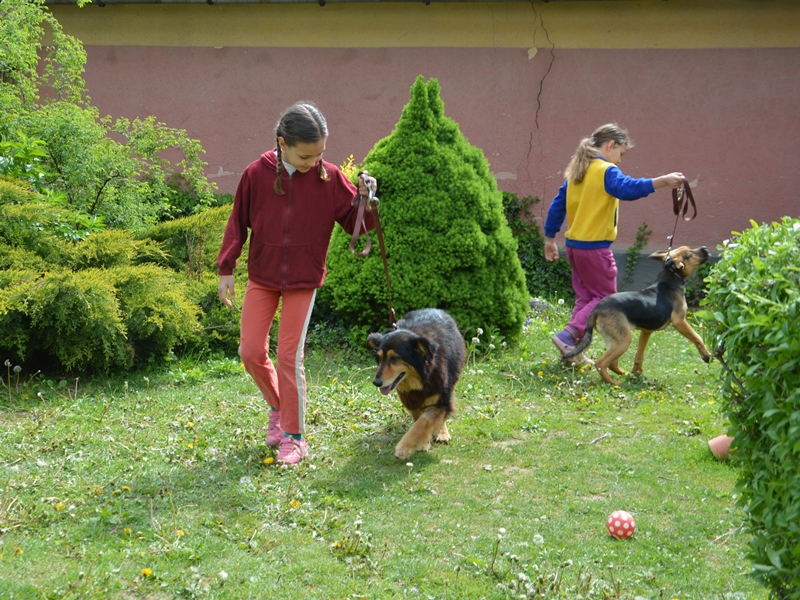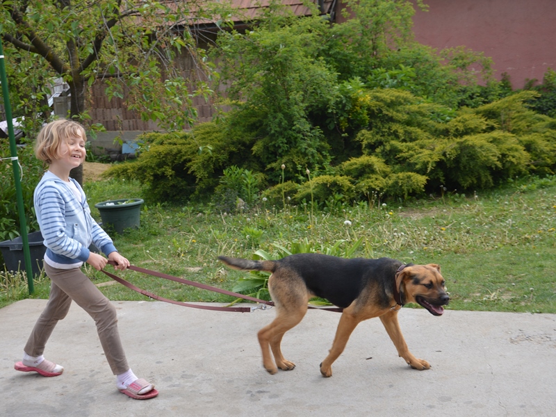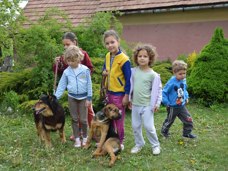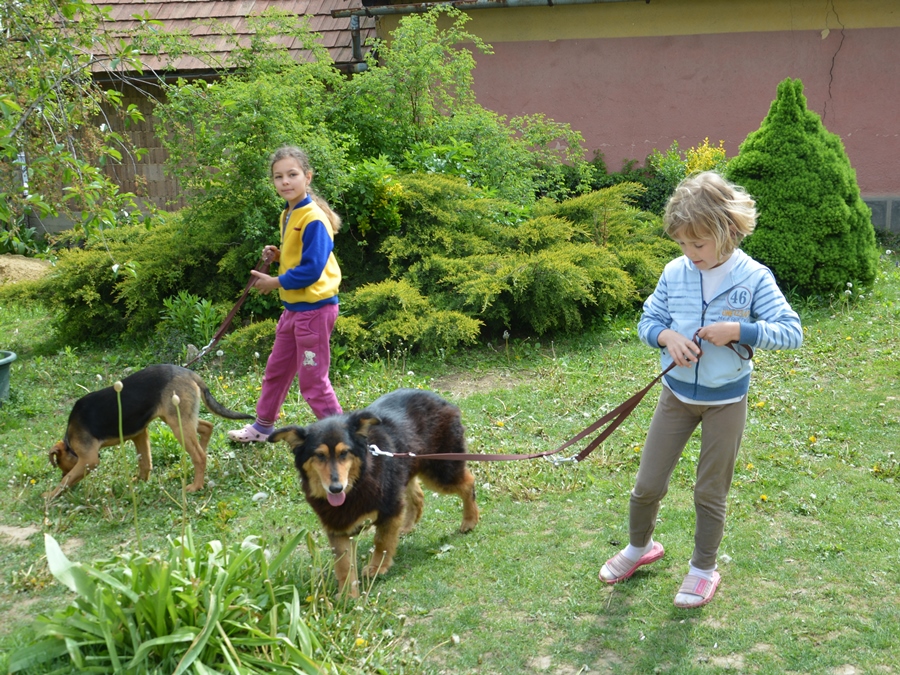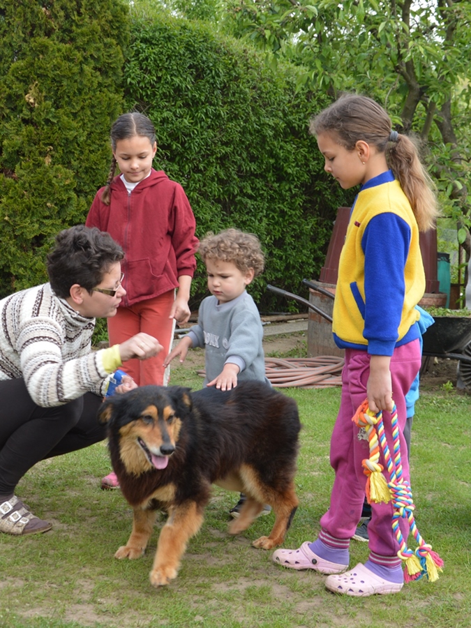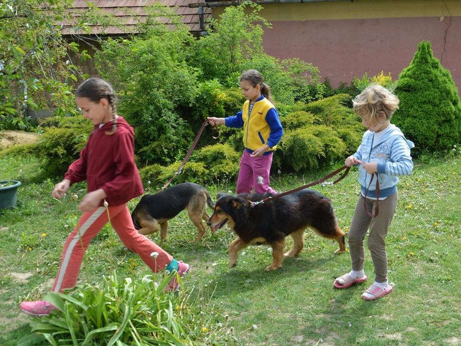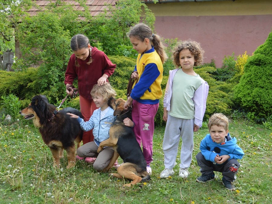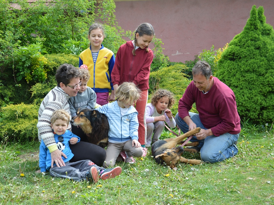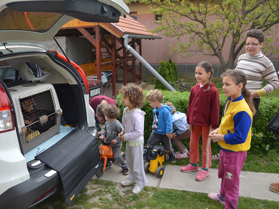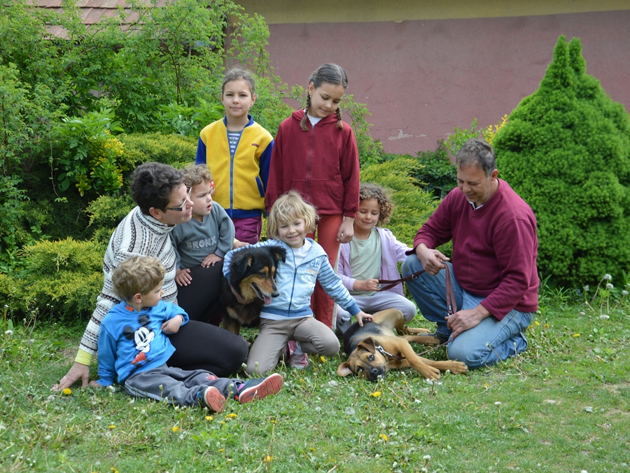 Egy érdeklődő telefonhívás, és egyeztetés után begördült hozzánk egy mikrobusz, benne hat, gyönyörű, jól nevelt gyerekkel és körülzsongták a kutyusainkat. Nehéz volt a választás: a család két pártra szakadt, majd megszületett a spártai döntés: mindkét kutyát örökbe fogadják!