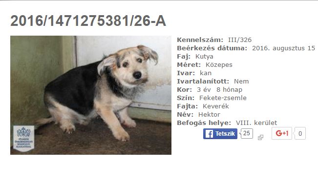 Hektor 6 éves, keverék kan úrfi, akinek meghalt a gazdája, és őt leadták az Illatos útra. Nyár végén került vettünk gondozásunkba a jámbor kiskutyát. Novemberben keresett fel bennünket Zoltán és Ági, akik a látogatásokat követően örökbe fogadták őt. Új nevet is kapott: mostantól Buksi a büszke neve. A kutyus teljesen kivirult az új gazdiknál: hancúrozik, labdázik egész nap. A napokban levelet is kaptunk a gazdiktól, amiből árad a szeretet! Érdemes elolvasnotok! 🙂