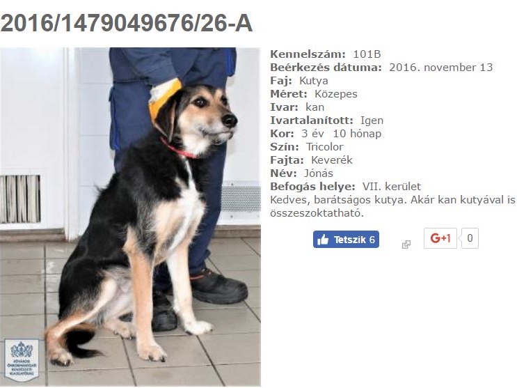 Jónás hároméves kan kutya, akit tulajdonosa adott le 2016 novemberben, a VII. kerületből az Illatos útra. A barátságos, korábban lakásban tartott, ivartalanított kutyát négy hónap reménytelenség után márciusban vette magához alapítványunk. A negatív szívférgesség, bőrférgesség és labor vizsgálatokat követően megkezdtük a Gazdi keresést.