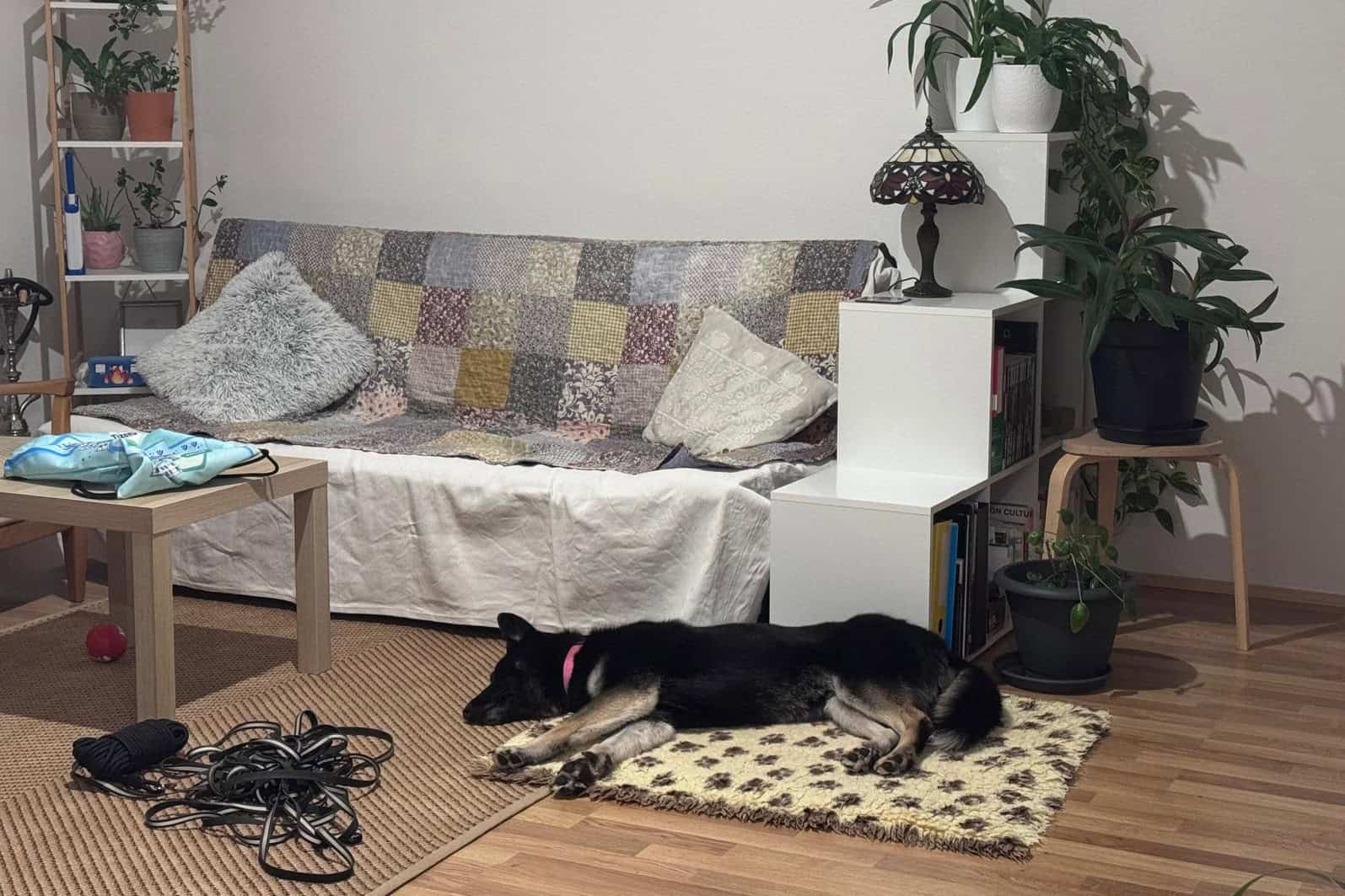Van két kanapém, egy vetbedem, egy beltéri kutyaházam, egy erdőm, egy Duna-partom, egy egyetemi campusom, 15 sípolós labdám, egy máris félig széttépett papagájom és egy Kong mókusom. A környéken élő szagos állatokról nem is beszélve: nyulak, őzek, bocik. No meg egyszerre két gazdim is van, akik már a második nap bedobtak falkázni 15 eb közé. A jack russell majdnem megevett, de azt hiszem, én piszkáltam túl sokáig. Ma már jobban értettem, amikor rám mordult egy chihuahua – rögvest meg is dicsértek! Amúgy a gazdik rokonai és a barátai is tök jófejek – mindenféle nyelveken beszélnek! Én is elkezdtem összerakni, hogy a „sitz!” meg a „bleib!” az olyasmi, mint az „ül” meg a „marad”, de bevallom, nehéz koncentrálni, amikor elcsavarja az orromat egy Bergkäse. Majd még jelentkezek, de most sürgősen szundiznom kell a délutáni körünk előtt. Folyamatosan egy 15 méteres madzagot kell magam után húzni sprintelés közben, tiszta terror…😊 Puszipacsi, Léna”