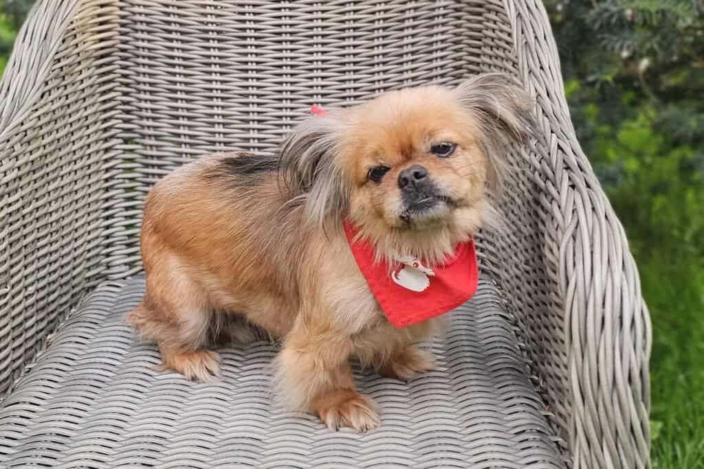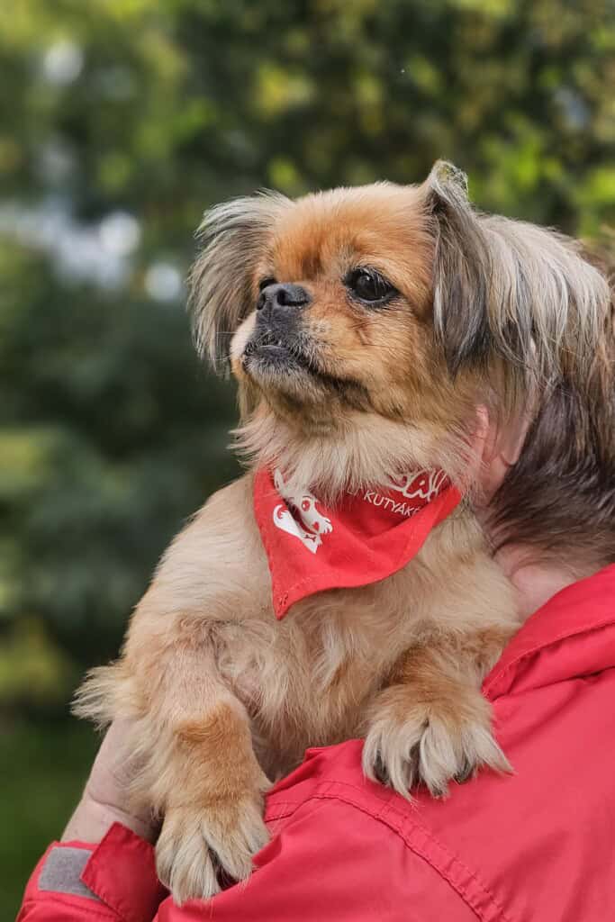 A jámbor, barátságos, mindössze 5 kilós, tibeti spániel-jellegű kislányt alapítványunk vette gondozásába. Ideiglenes befogadását Katalin vállalta el. Lágyék sérvét megműttettük és ivartalaníttattuk is.
