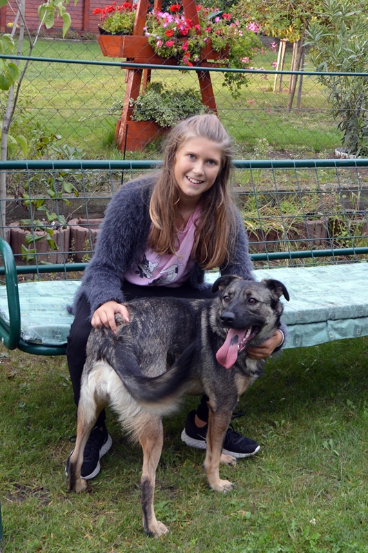 Szeptember elejétől folyamatosan látogatta már őpt Mónika, Mihály és nagylányuk Dóri, akik nagyon komolyan vették az összeszoktatást és a felelős örökbe fogadást. Így aztán nemrégiben Lola péceli, kertes házukba költözött, ahol boldog kinti-benti kutya, és macskatulajdonos lett!