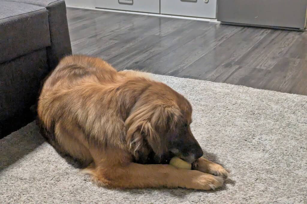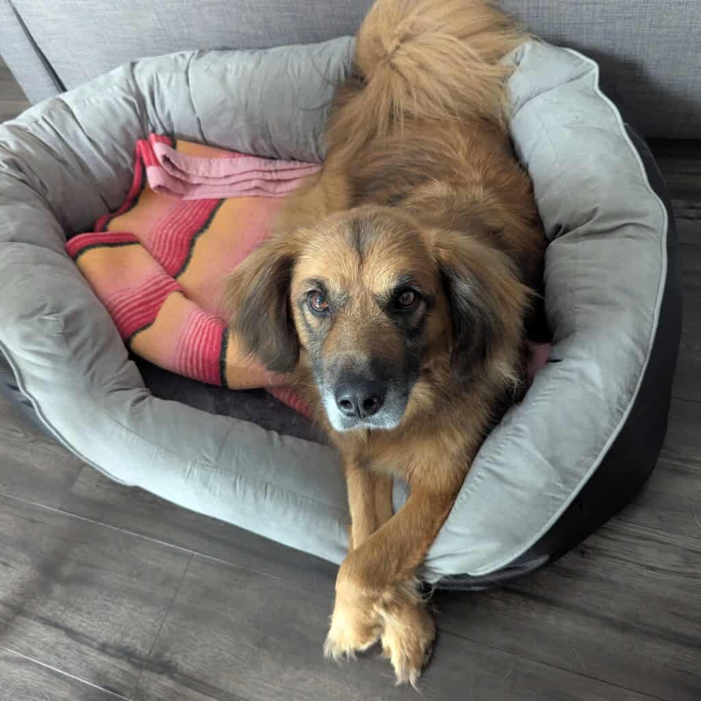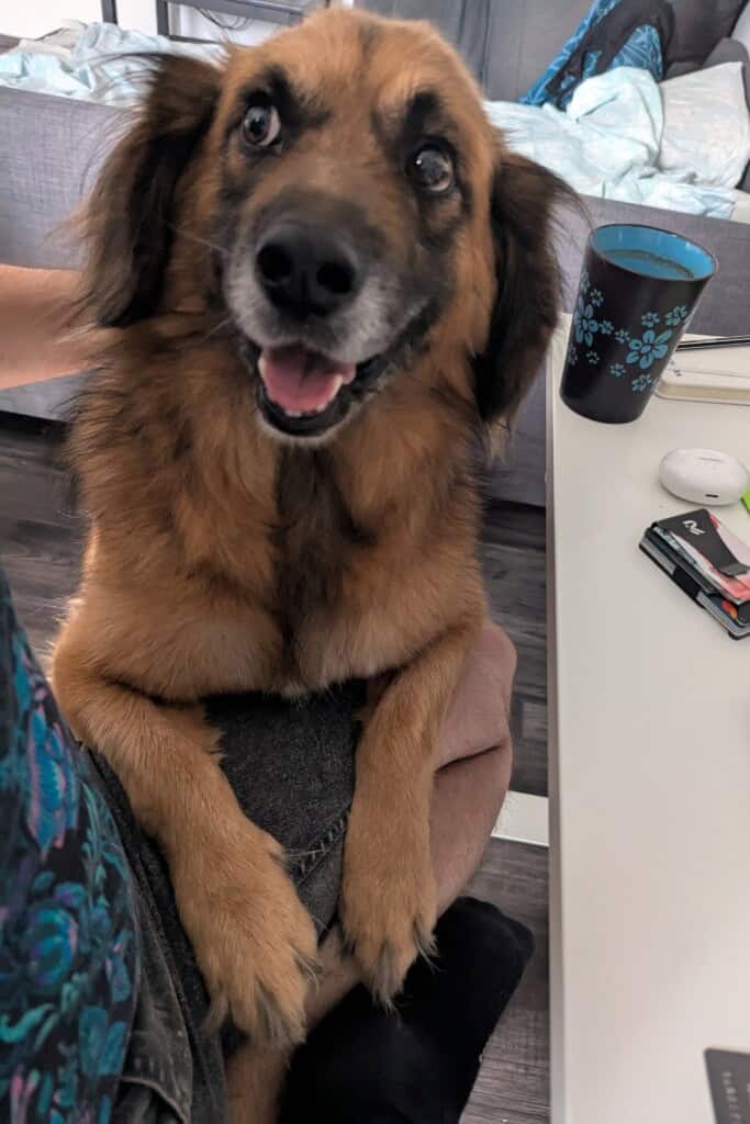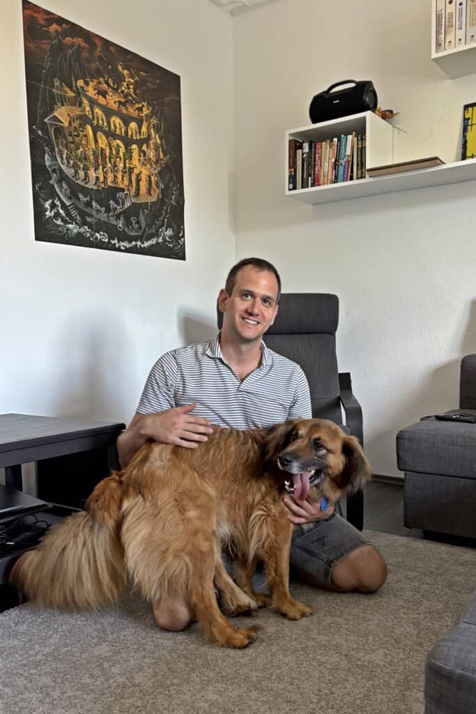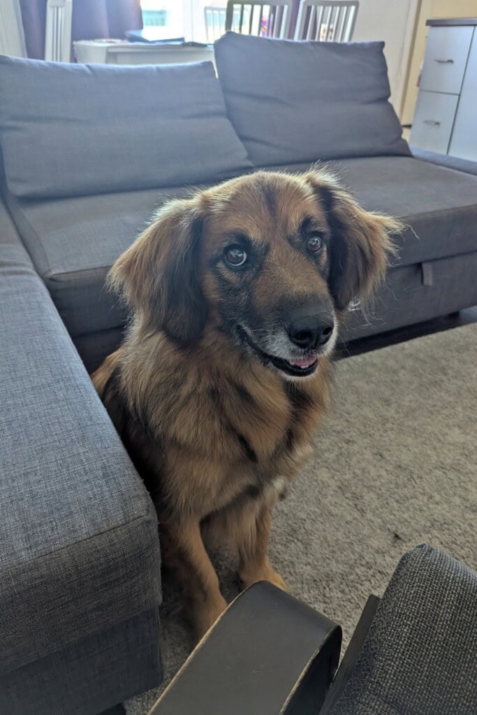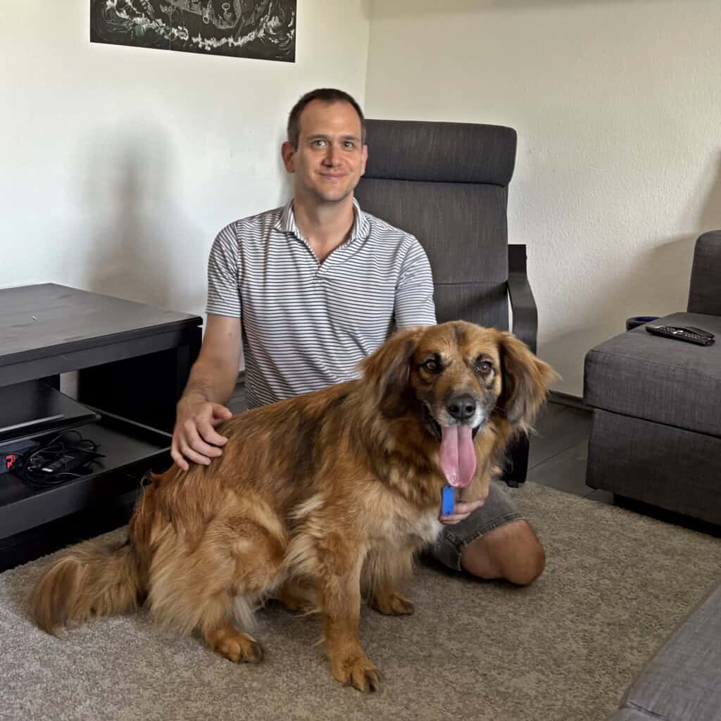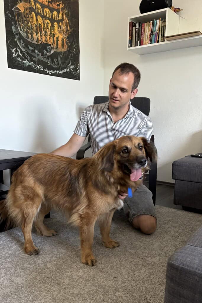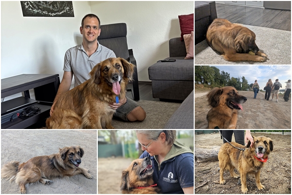 A békés, emberközpontú kutya nálunk négy hónapig vendégeskedett, míg megtalálta őt Gábor, az ideális gazdi, aki hétvégente rendszeresen látogatta, sétáltatta őt.