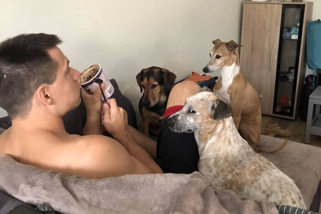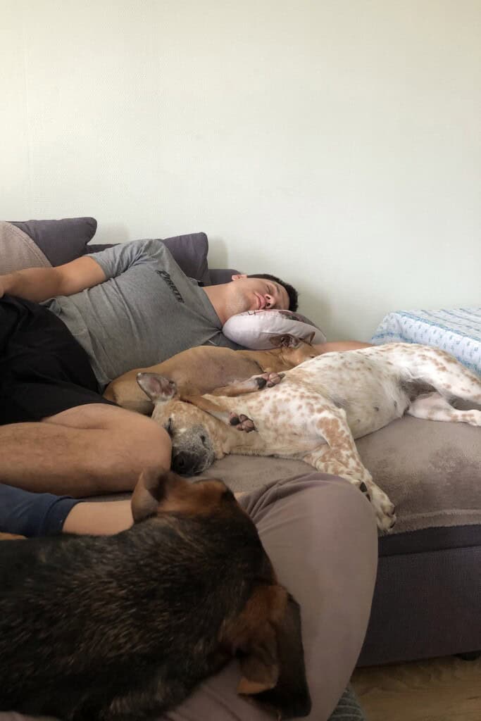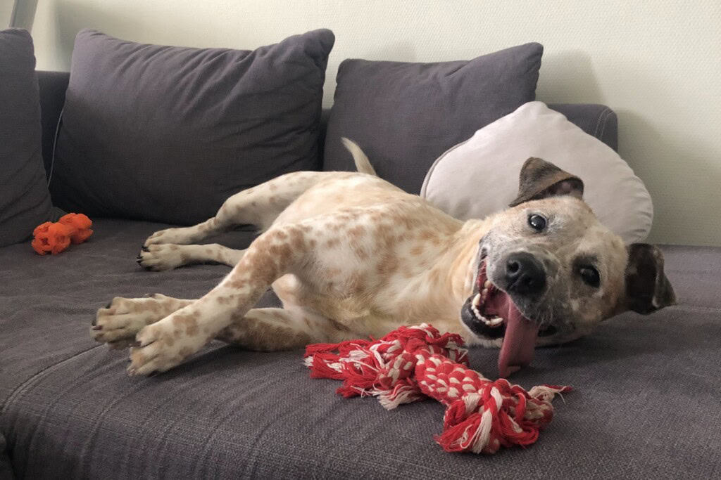 Más kutyákkal nemtől, kortól függetlenül jól kijött, szépen kommunikált velük, azonban a közös játékot még tanulnia kellett. Aztán – ivartalanítását követően- vártuk-vártuk a szupergazdikat, majd egyszer csak megtaláltuk őket!