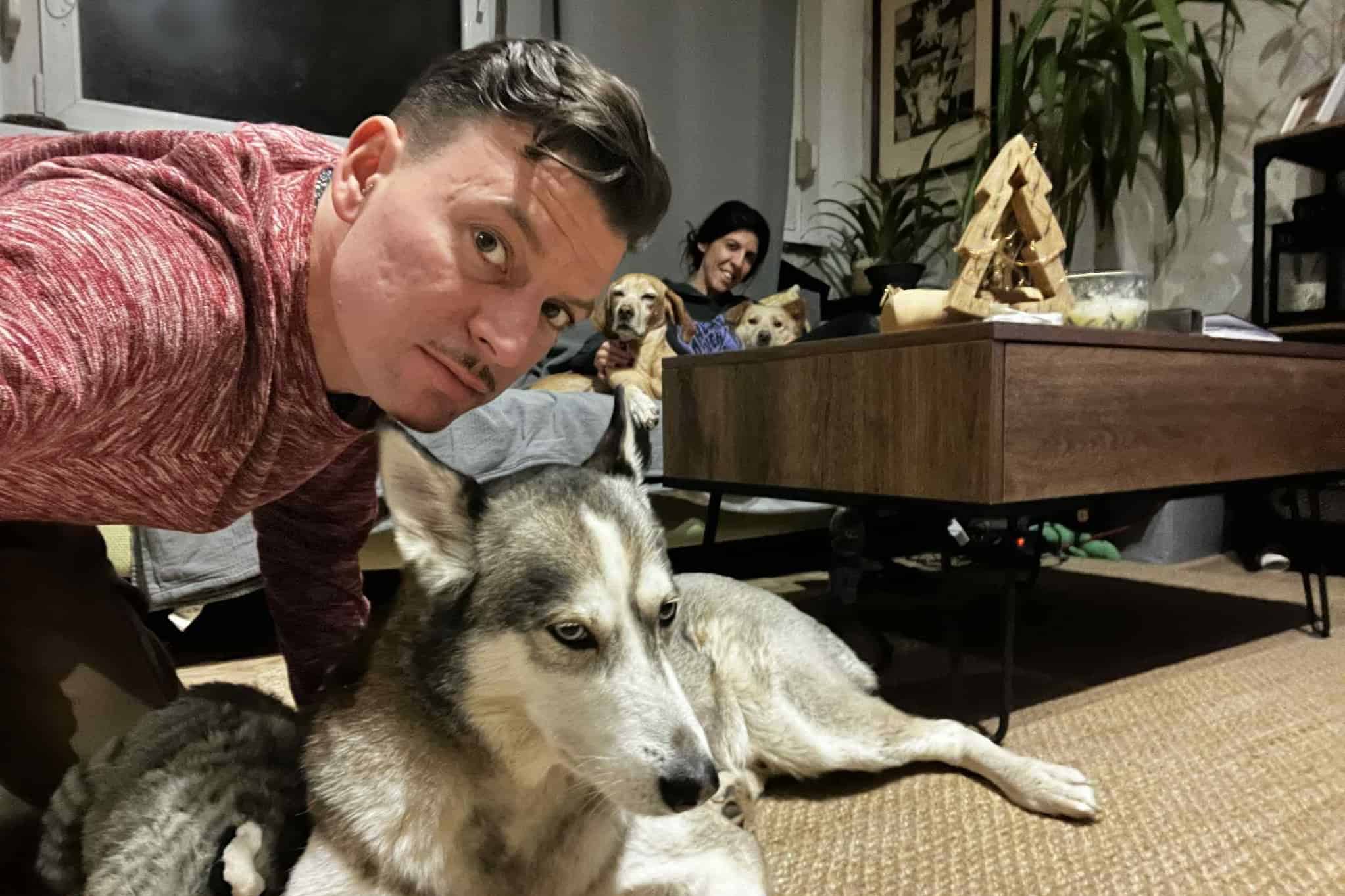 Nabu, néhány napja már és Eszter és Balázs pesti lakásában, Sky-al, és Lupinnal két új kutyabarátjával él.