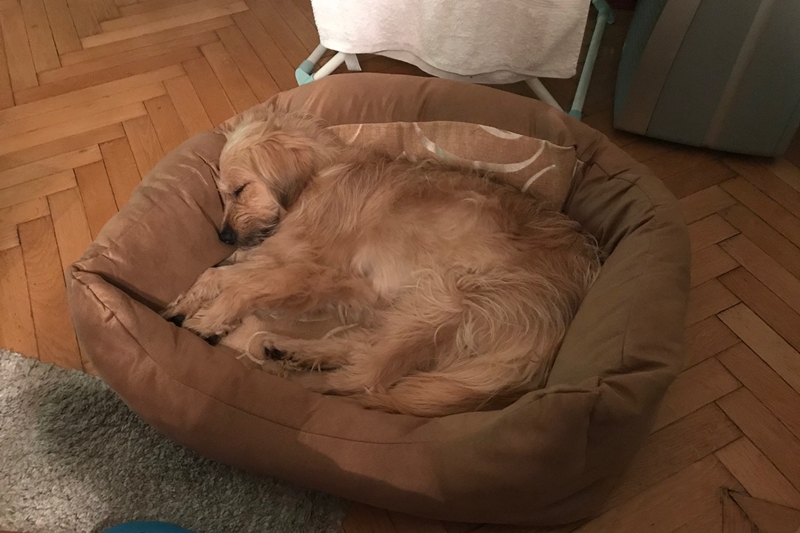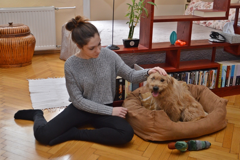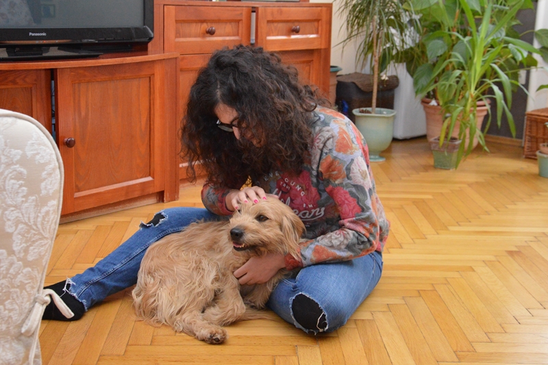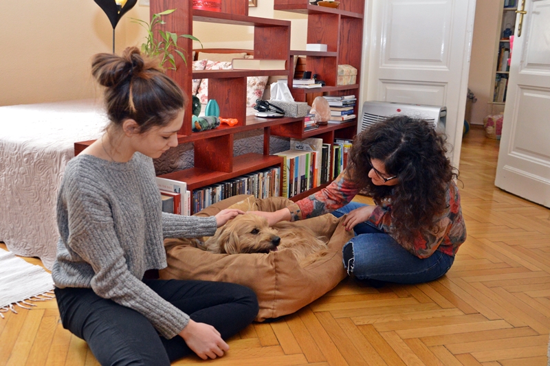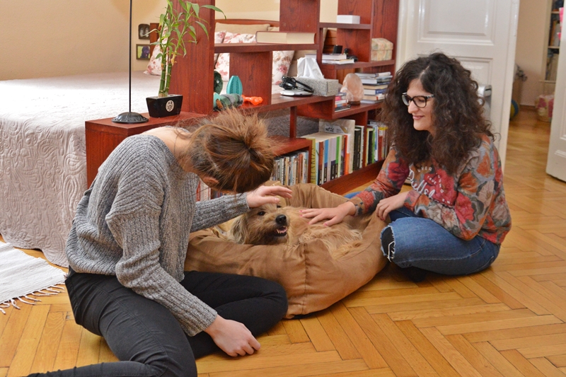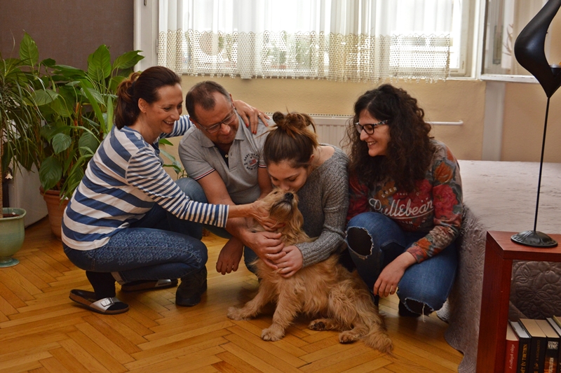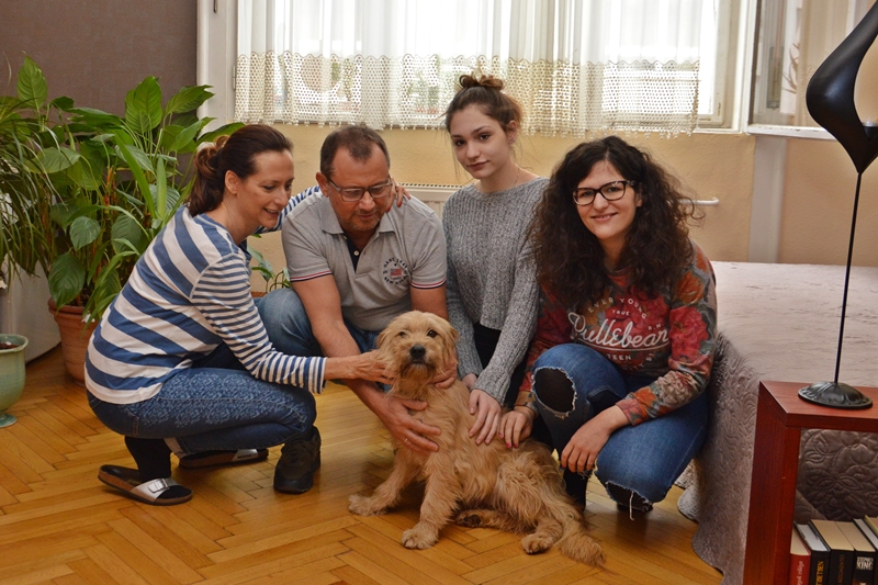 Gabriella és Péter is érdeklődött a kutyus iránt: eljöttek hozzánk, hogy összebarátkozzanak Sárival, majd elvittük a kutyust belvárosi otthonukba, ahol két lányuk, – Juci és Noémi – is várta már őt.