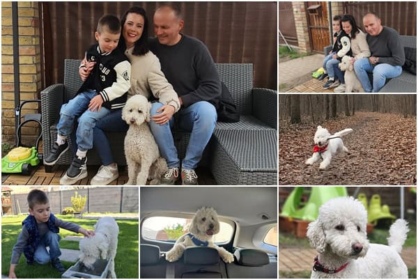 Ahogy Zsuzsi mai levelében írja: „Nagyon boldogok vagyunk Oszkárral, minden pillanat öröm vele. Biztos vagyok benne, hogy Ő is hamar a szívébe zár minket. Nagyon kis okos és nyugodt kutyus. Szeretettel, Zsuzsi, Zsigmond és Gyuri”