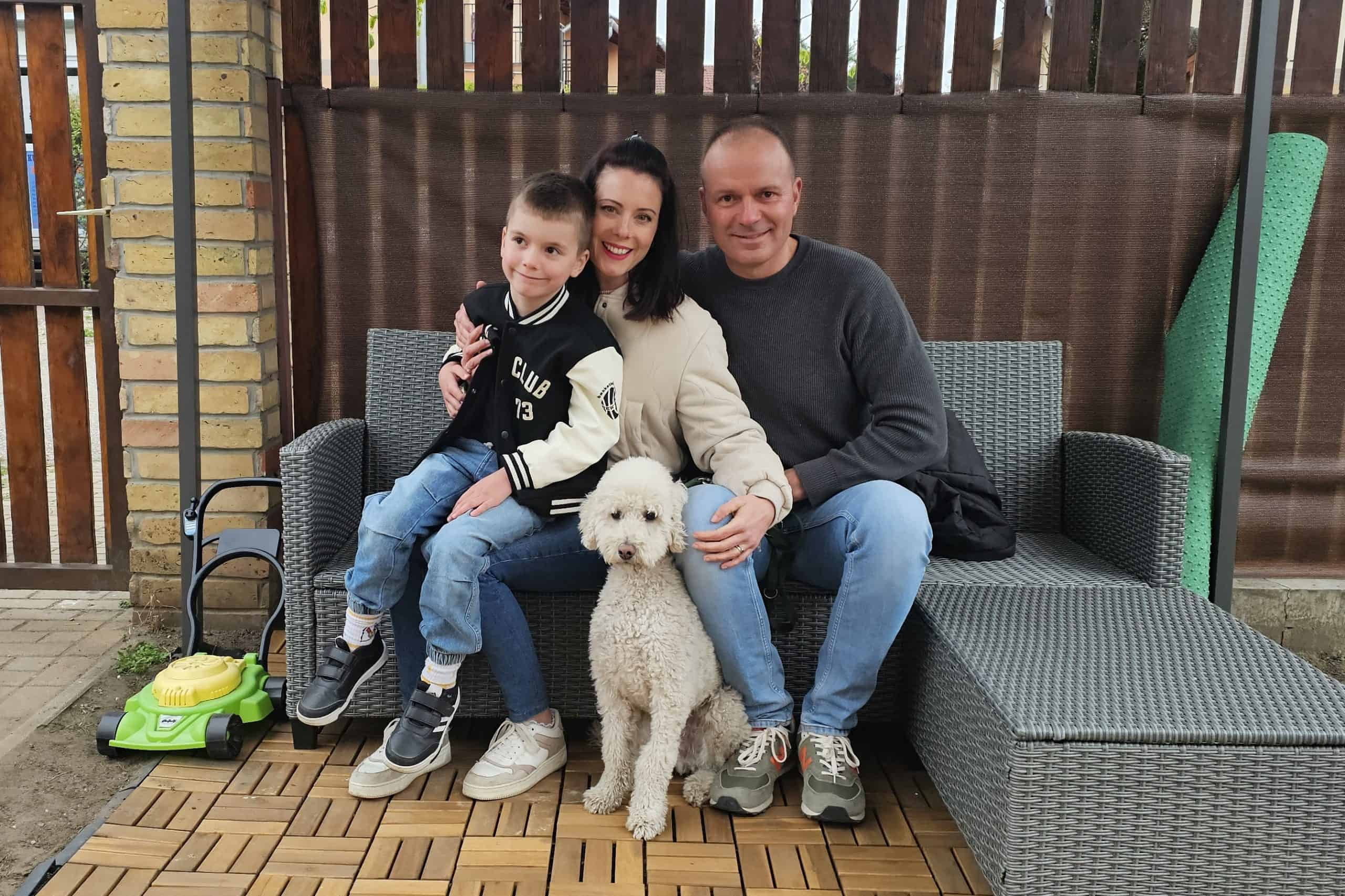 Oszi most már a boldog család balatonakarattyai házában él, élvezi a hatalmas kertet és sok játékot, amit eddig nélkülöznie kellett.