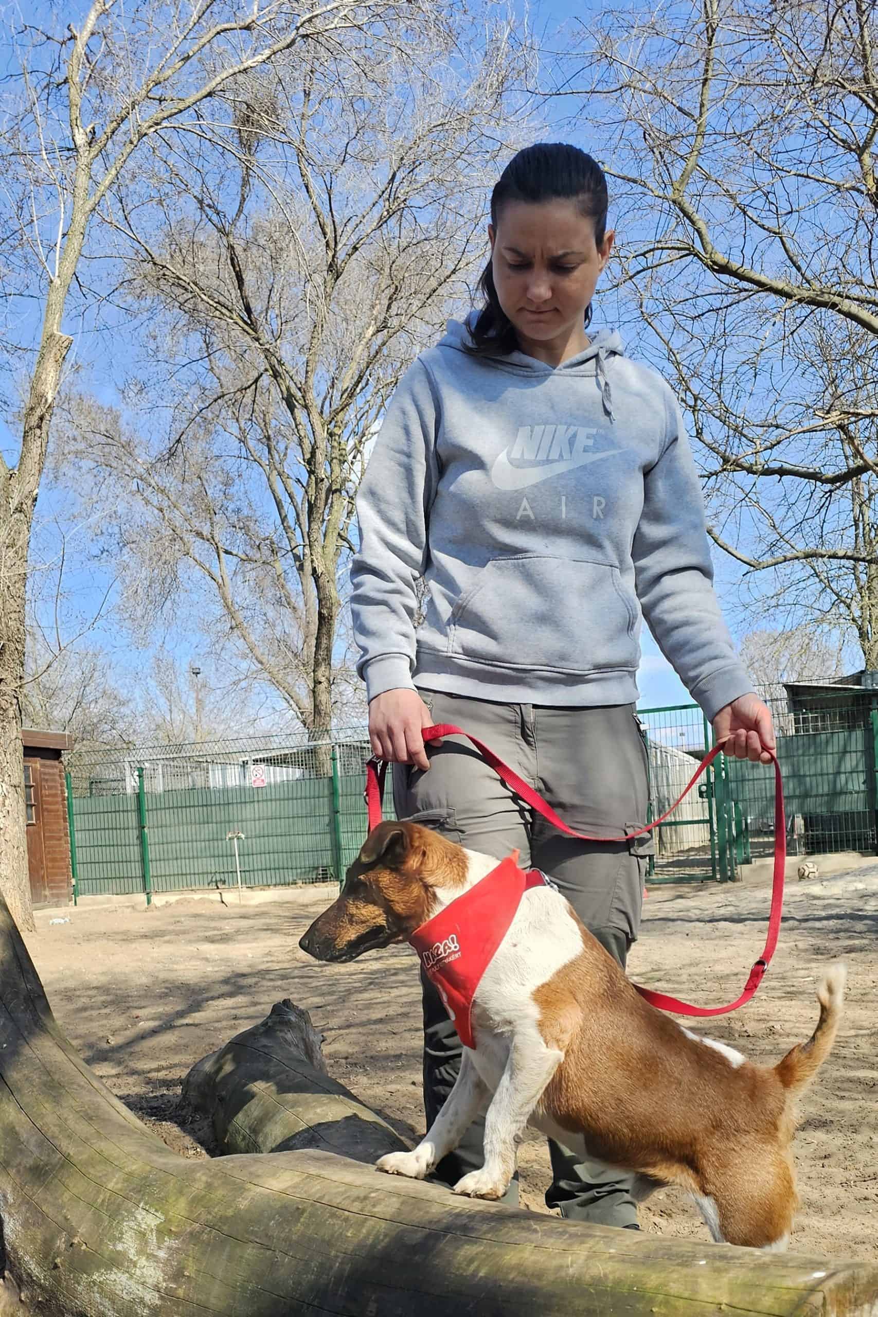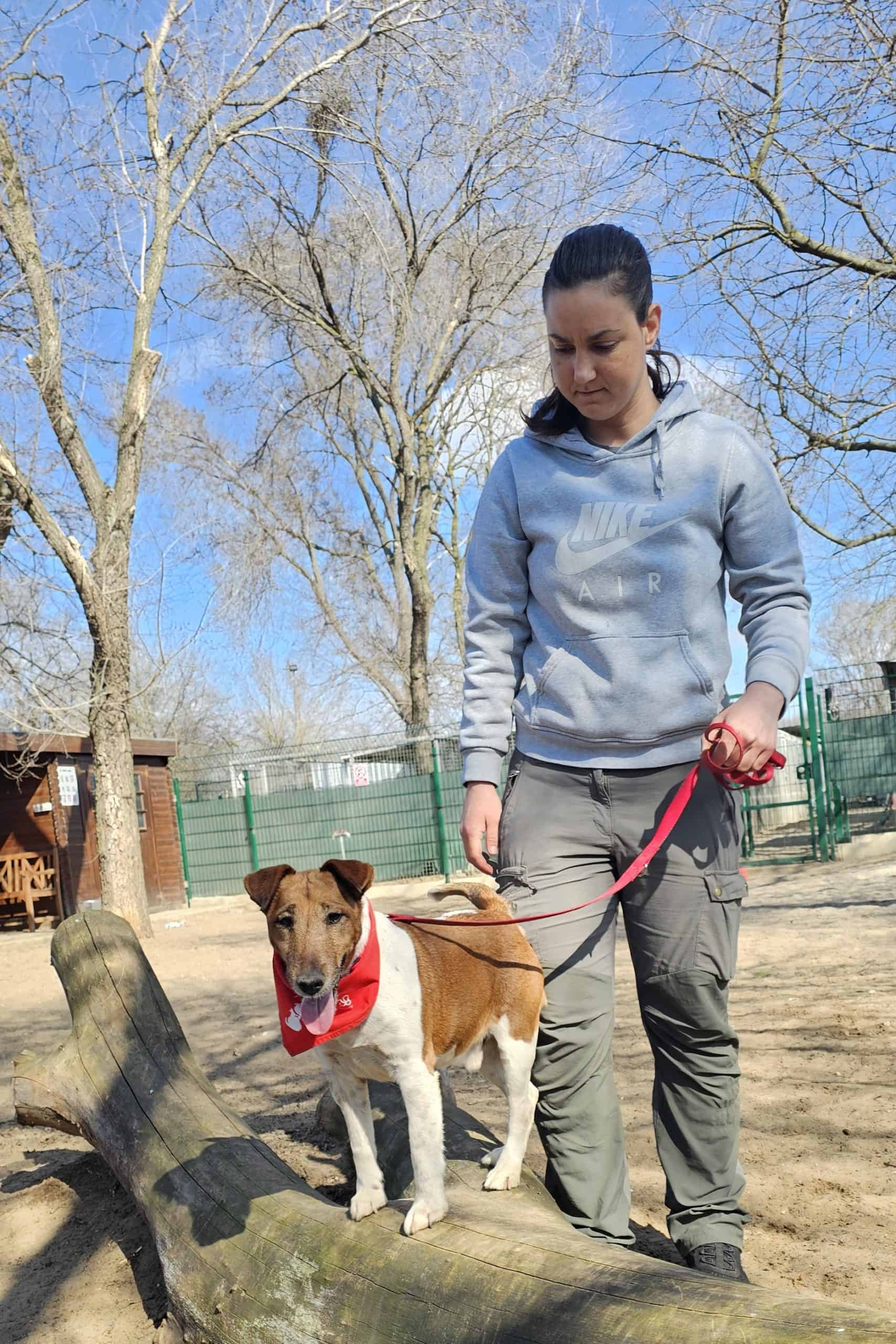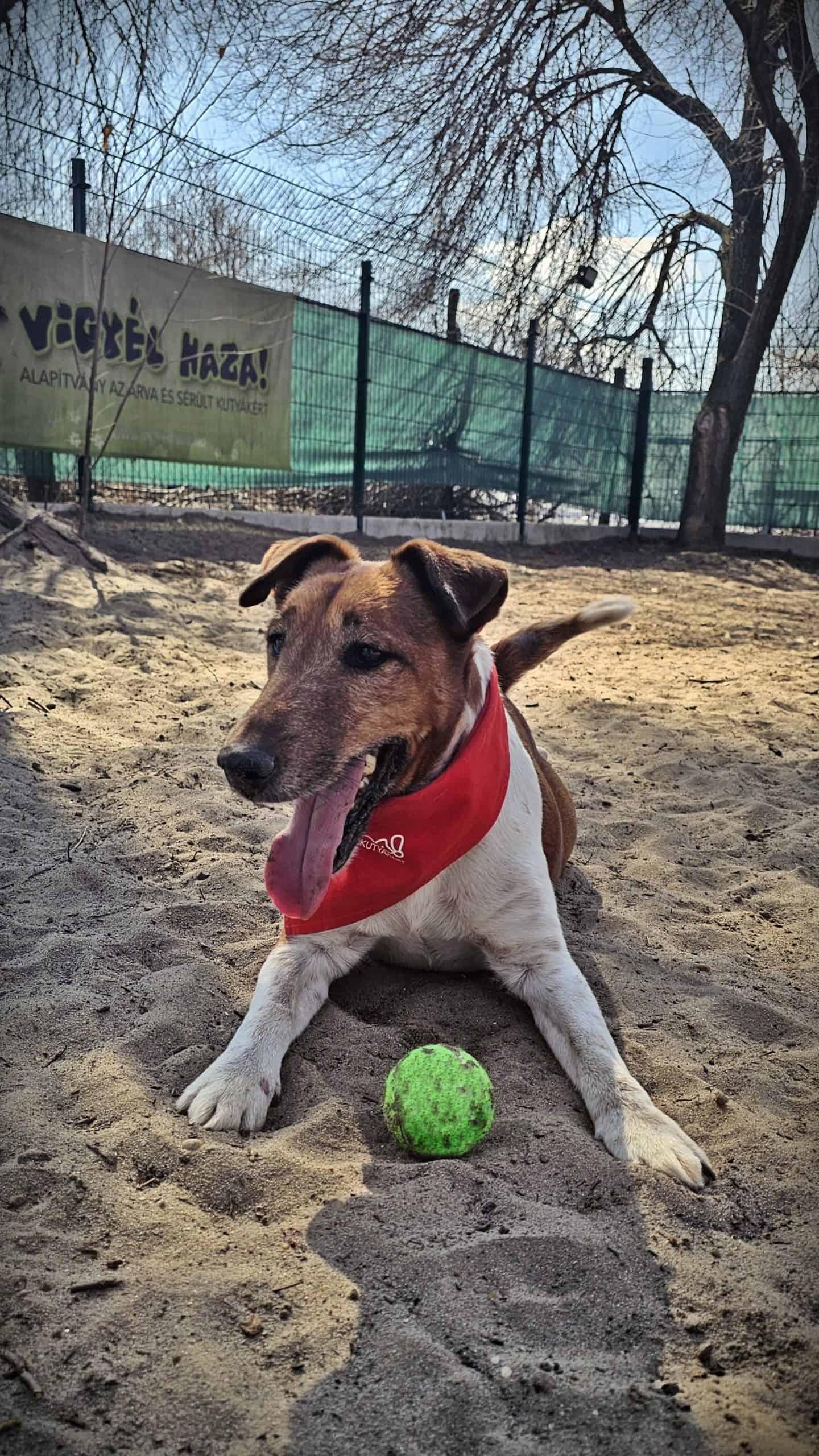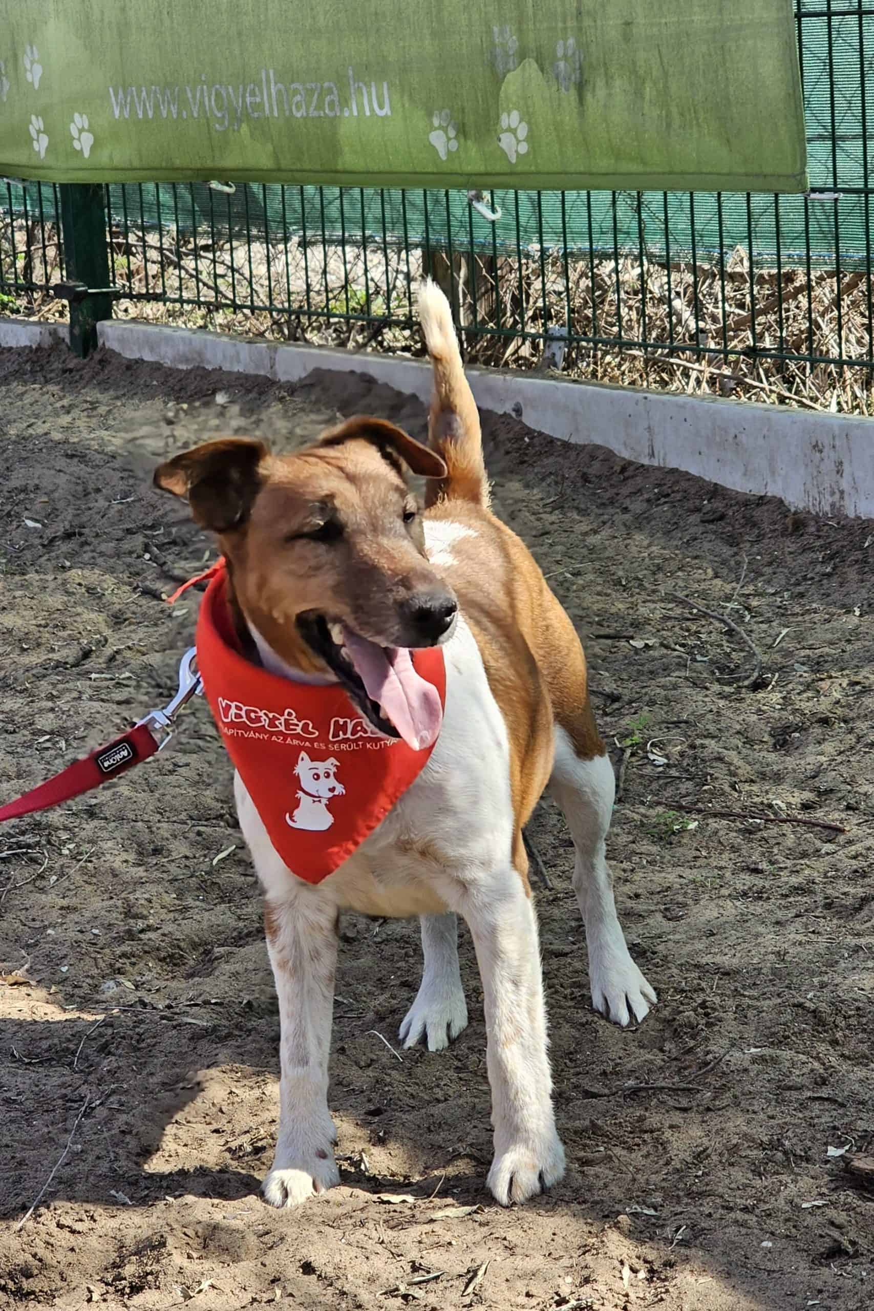 A sima szőrű foxterrier kan kutyus februárban került hozzánk az Illatos útról. A telepre egy hét után új tulajdonosa vitte vissza, mert a macskájára vadászott. (Persze erre számítani lehetett volna egy terriernél és ez nem is az kutya hibája.)