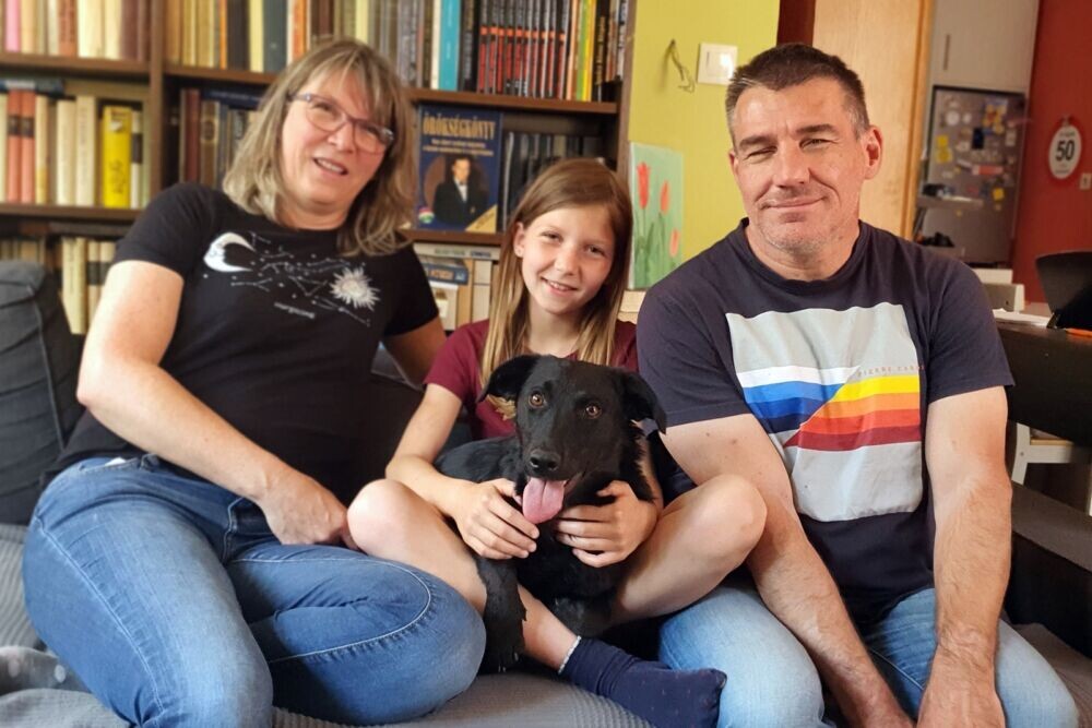 Aztán nemrég, az utolsó örökbe adási próbálkozásunknál Csilla és családja úgy döntött, hogy már nem tudnának Pipacstól sem megválni. Így a boldog kiskutya végleg hazatért Csilla, férje István és gyerekei Bejke és Keve otthonába.