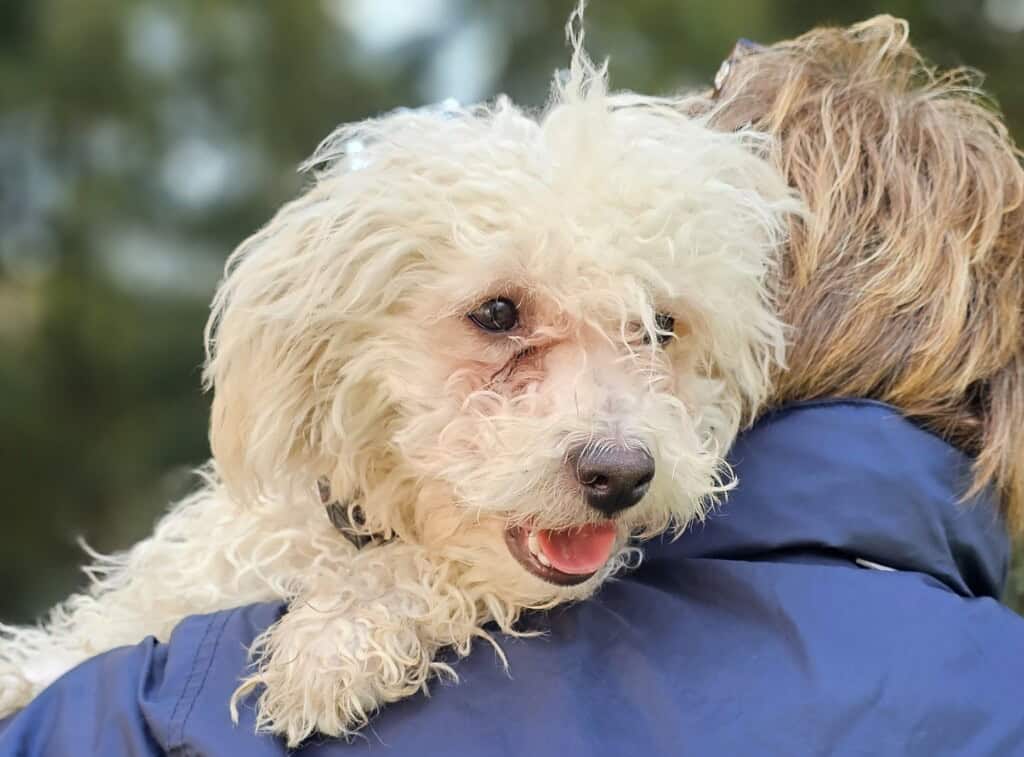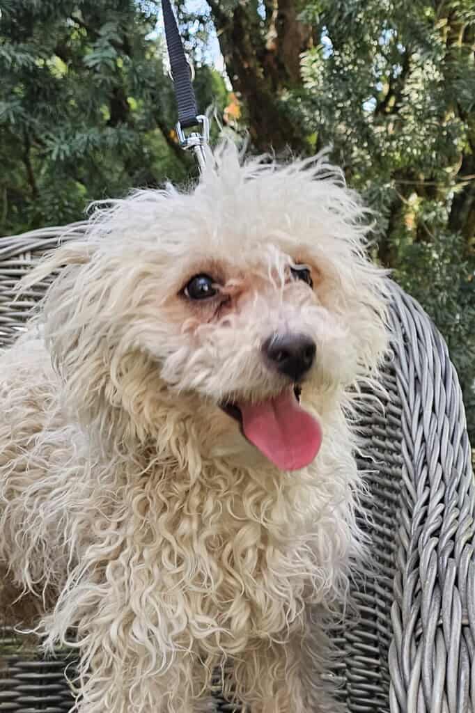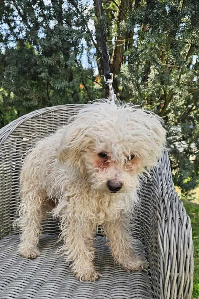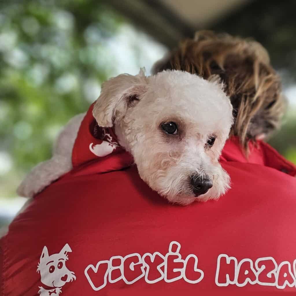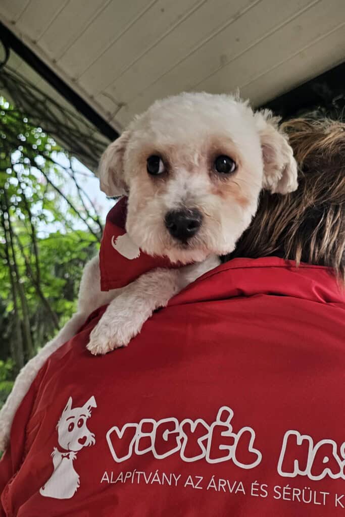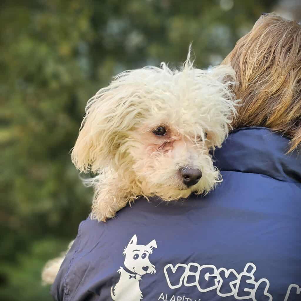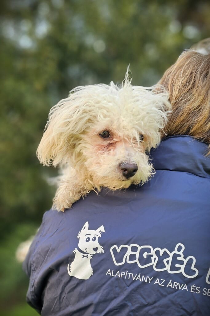 Sanyikát, ezt a félénk, gyámoltalan kiskutyát Budapesten, a XVII. kerületben találták. Mivel az elhanyagolt kiskölyöknek nem volt azonosítója, alapítványunk vette gondozásába. A napokban elhanyagolt bundájától önkéntes kutyakozmetikusunk, Nikolett szabadította meg.