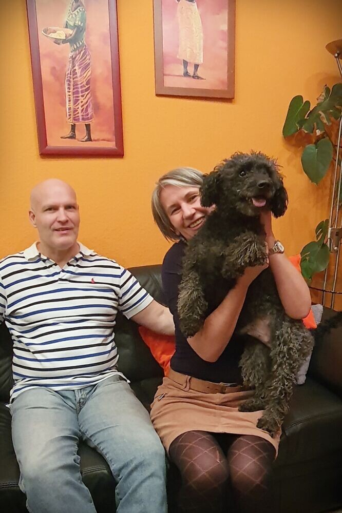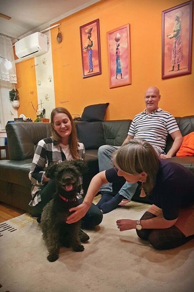 Andrea és Gusztáv az első perctől nagyon eltökéltek voltak és több közös sétán barátkoztak tappanccsal, aki elfogadta őket. A nagy kérdés az volt, hogy mit szólna az új jövevényhez Morfeusz, a család macskája? Szerencsére az összeszoktatás sikeres volt és a kölcsönös, tiszteletteljes távolságtartás mára már barátsággá szelídült. Így a két kedvenc a lakásban már egymás mellett várják Andrea és Gusztáv hazaérkezését a család budaörsi lakásában.