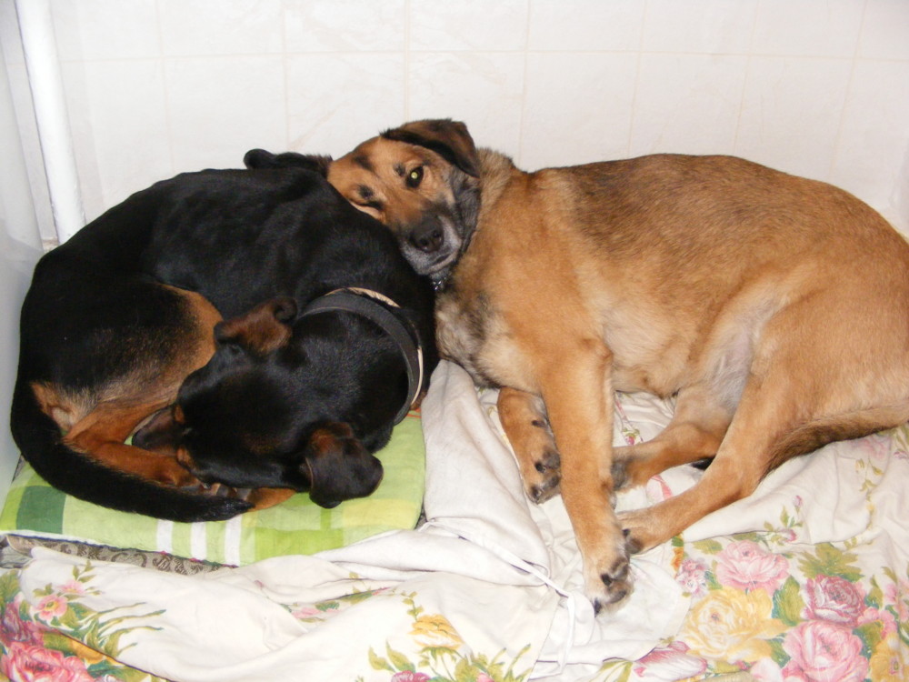 Reni már hetekkel korábban megismertünk. Sokat érdeklődött Zokni iránt és másik kutyusával, Sábával (a hat éves szukával, aki szintén az Illatos úrtól került Renihez öt éve!!) felkészültek Zokni fogadására. Az első közös, városligeti séta sikeres volt, ami közös hétvégét követett.